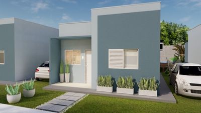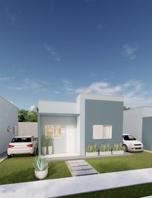 - Casas terreas, individuais, com 02 dormitórios, sala, cozinha, banheiro social, varanda, garagem