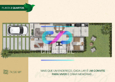 - Área construída: 74.56 m²